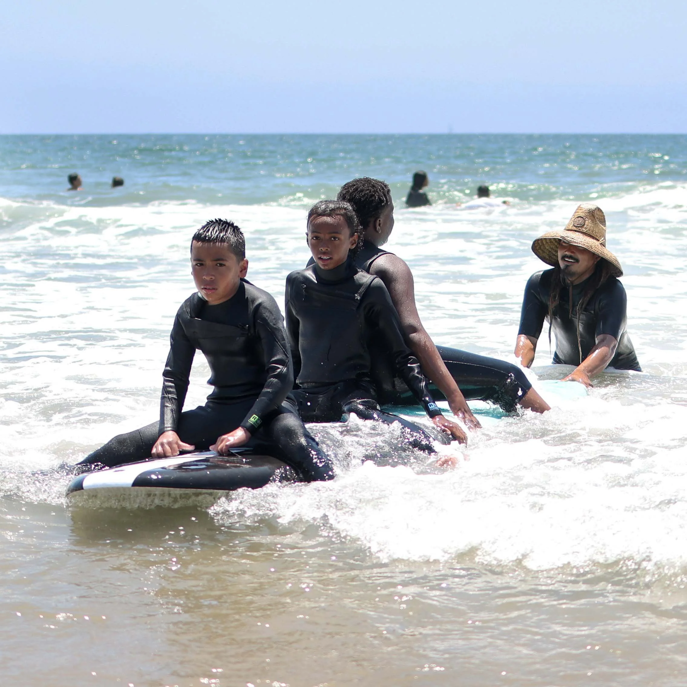 Since 2021, Color the Water has partnered with WLCAC through their GRYD and Outdoor Equity program, supporting over 50 youth surfers in Watts. CTW is a non-profit, offering free surf lessons and media for all BIPOC, while educating communities about surf history from a decolonized perspective.